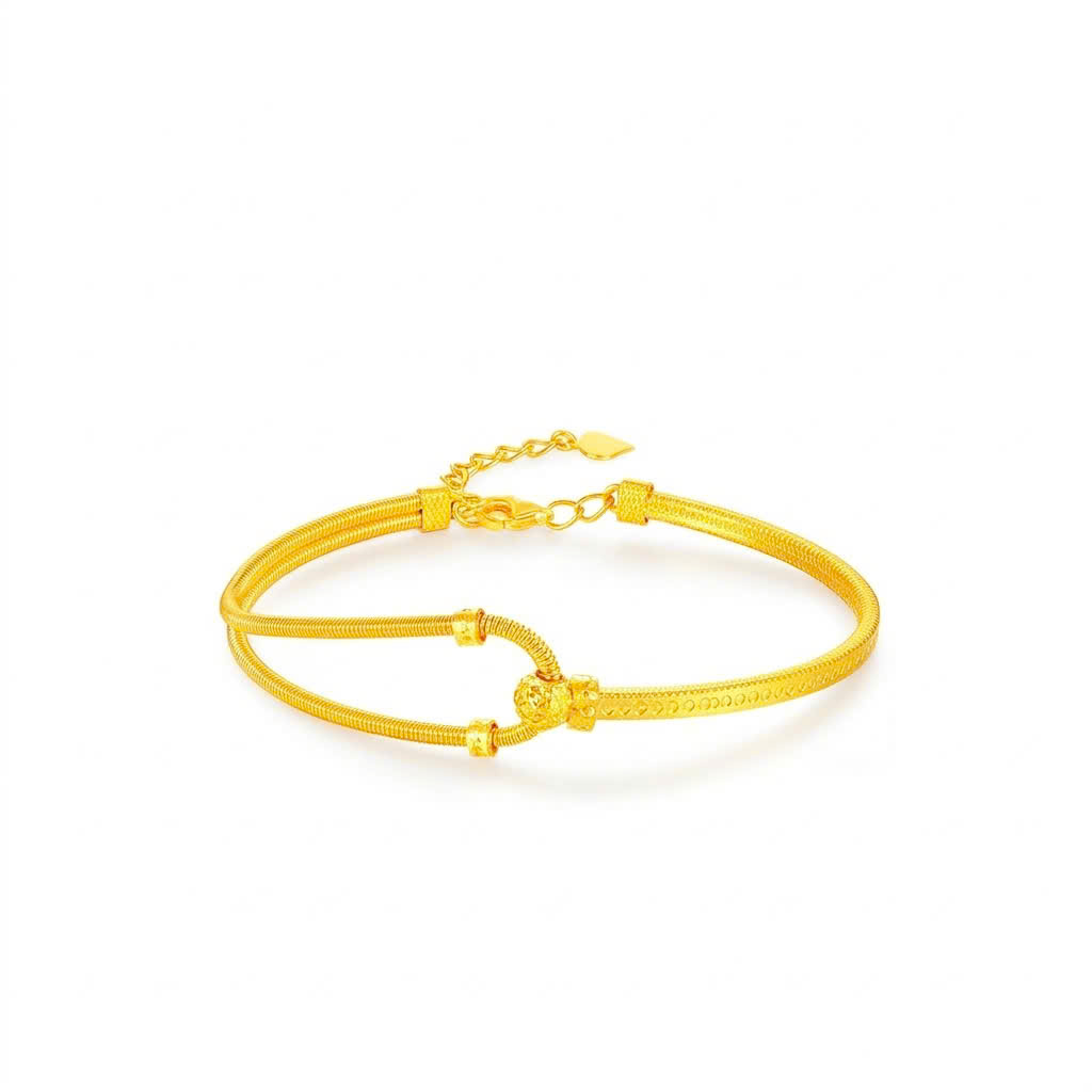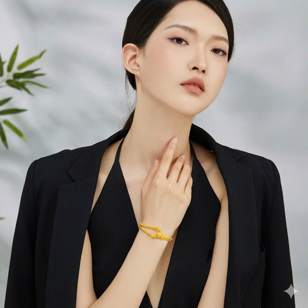 Vòng tay nữ mạ vàng cao cấp với thiết kế tinh giản nhưng đầy tinh tế, giúp tôn lên vẻ đẹp sang trọng và nữ tính cho người đeo. Điểm nhấn là chi tiết charm bi tròn độc đáo kết hợp dây đôi mềm mại, tạo cảm giác vừa hiện đại vừa cuốn hút.